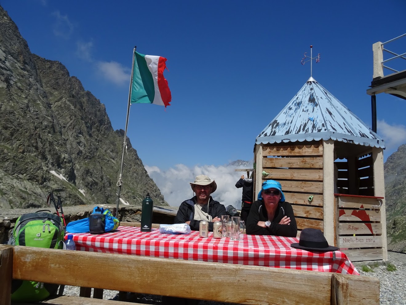 Stiamo bene al Rifugio Genova. Partiamo la mattina presto, e ci arrampichiamo sopra al lago.